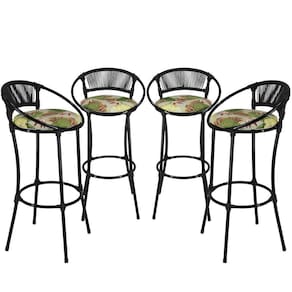 4 Banquetas Havaí Em Fio De Fibra Artesanal Para Bar, Bancada, Balcão, Lanchonete Florido Preto