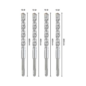 Conteúdo da Embalagem: - 04 Brocas SDS Plus 18x400 mm de Aço Carbono e Tungstênio.