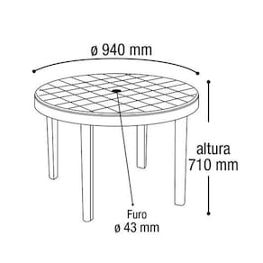4 cadeira 1 Mesa Redonda Área De Lazer Preta Desmontável 25389 Arqplast 4 cadeira 1 Mesa Redonda Área De Lazer Preta Desmontável 25389 Arqplast Mesa Plástica redonda Desmontável Preta Arqplast A Mesa Plástica redonda Desmontável veio para facilitar seus momentos de lazer. Produzida nacionalmente, ela é confeccionada em polipropileno 100% virgem com proteção UV, garantindo maior durabilidade, e conta com excelente acabamento. Muito versátil, pode ser Utilizado à beira da praia, piscina, camping, varandas, restaurantes, hotéis, bares e festas, ou seja, onde você precisar. É desmontável, tornando-a super prática e fácil de transportar, sem contar que ocupa pouco espaço na hora de guardar. Tenha todo o conforto ao seu alcance com a Mesa Plástica Quadrada Desmontável Indicação e Uso: Indicada para ser Utilizado à beira da praia, piscina, camping, varandas, restaurantes, hotéis, bares e festas, ou seja, onde você precisar. Observação: Fácil de limpar Suporta até: 40kg Possui entrada para guarda sol Desmontável: ocupa menos espaço para guardar Possui proteção contra raios UV: garante maior durabilidade Composição: Polipropileno Cor: Preta Altura: 71 cm Comprimento: 94 cm Largura: 94 cm Medidas do tampo: 94x94x6cm Medidas do pé: 7x7,5x70cm Medidas montada: 94x94x71 cm Arqplast ---------------------------------------------------- CADEIRA DOBRAVEL PRETA 25671 ARQPLAST Esta linda cadeira é ideal para: Bares, hotéis, lanchonetes, clubes, escolas, padarias, restaurantes, festas, encontros familiares. Medidas do produto: Dimensões: 35X 42 X 80 cm comprimento x largura x altura Suporta até 110 kg