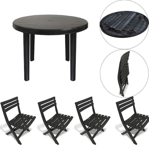 4 cadeira 1 Mesa Redonda Área De Lazer Preta Desmontável 25389 Arqplast 4 cadeira 1 Mesa Redonda Área De Lazer Preta Desmontável 25389 Arqplast Mesa Plástica redonda Desmontável Preta Arqplast A Mesa Plástica redonda Desmontável veio para facilitar seus momentos de lazer. Produzida nacionalmente, ela é confeccionada em polipropileno 100% virgem com proteção UV, garantindo maior durabilidade, e conta com excelente acabamento. Muito versátil, pode ser Utilizado à beira da praia, piscina, camping, varandas, restaurantes, hotéis, bares e festas, ou seja, onde você precisar. É desmontável, tornando-a super prática e fácil de transportar, sem contar que ocupa pouco espaço na hora de guardar. Tenha todo o conforto ao seu alcance com a Mesa Plástica Quadrada Desmontável Indicação e Uso: Indicada para ser Utilizado à beira da praia, piscina, camping, varandas, restaurantes, hotéis, bares e festas, ou seja, onde você precisar. Observação: Fácil de limpar Suporta até: 40kg Possui entrada para guarda sol Desmontável: ocupa menos espaço para guardar Possui proteção contra raios UV: garante maior durabilidade Composição: Polipropileno Cor: Preta Altura: 71 cm Comprimento: 94 cm Largura: 94 cm Medidas do tampo: 94x94x6cm Medidas do pé: 7x7,5x70cm Medidas montada: 94x94x71 cm Arqplast ---------------------------------------------------- CADEIRA DOBRAVEL PRETA 25671 ARQPLAST Esta linda cadeira é ideal para: Bares, hotéis, lanchonetes, clubes, escolas, padarias, restaurantes, festas, encontros familiares. Medidas do produto: Dimensões: 35X 42 X 80 cm comprimento x largura x altura Suporta até 110 kg