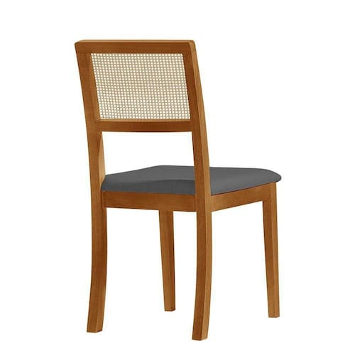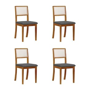 Kit 4 Cadeiras de Jantar Luxo Madeira Maciça Mel Encosto Telinha Palha Estofada Linho Bege Rubi