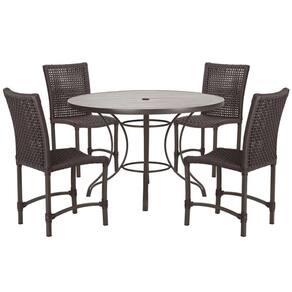 4 Cadeiras Cannes Corda Náutica e Mesa com Tampo Ripado 1,00m em Alumínio com Pintura Eletrostática para Jardim, Varanda, Cozinha, Piscina - Marrom Escuro