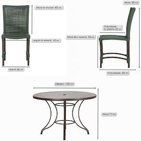 Itens incluso: Mesa Ascoli 100 Cm com 4 Cadeiras Cannes de Alumínio