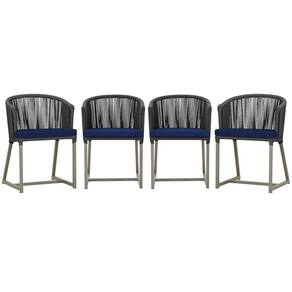 4 Cadeiras De Jantar Noronha Fendi Corda Náutica E10 Trama Preto