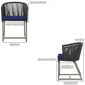Antes de comprar o seu produto verifique as medidas, o onde pretende instalar e se necessario contratar o servico de um qualificado. Produto conhecido como: Cadeira Noronha, Cadeira de aluminio, Corda nautica, Estofado impermeavel, Moveis de exterior, Cadeira resistente a agua, Design moderno em Cadeira, Cadeira para area externa, Cadeira de jardim, Moveis para varanda, Cadeira duravel, Cadeira de alta qualidade, Conforto em Cadeira, Cadeira elegante.