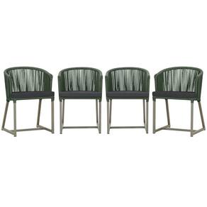 4 Cadeiras De Jantar Noronha Fendi Corda Náutica E11 Trama Verde