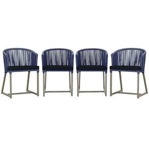 4 Cadeiras De Jantar Noronha Fendi Corda Náutica E12 Trama Azul