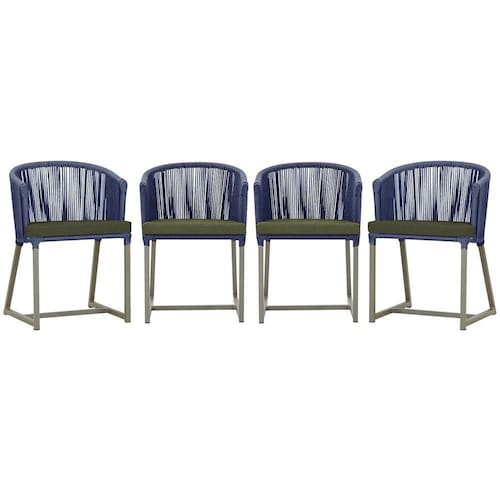 4 Cadeiras De Jantar Noronha Fendi Corda Náutica E13 Trama Azul