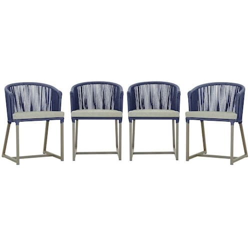4 Cadeiras De Jantar Noronha Fendi Corda Náutica E3 Trama Azul