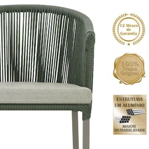 Descubra a Elegancia e Durabilidade da Cadeira Noronha. Combinando estilo e resistencia, esta cadeira traz o melhor do design contemporaneo em aluminio com micro pintura e acabamento em corda nautica. O estofado impermeavel completa o conforto e a funcionalidade, tornando-a ideal para ambientes externos e internos. Qualidade e elegancia que transformam qualquer espaco. Adicione um toque de sofisticacao e conforto ao seu espaco com a cadeira Noronha.