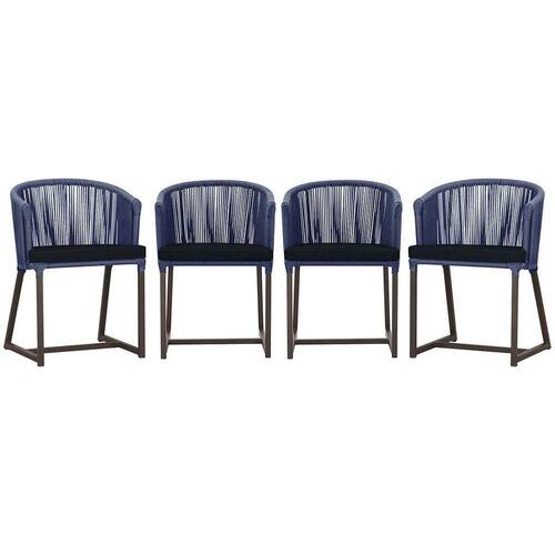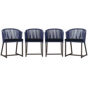 4 Cadeiras De Jantar Noronha Marrom Corda Náutica E12 Trama Azul