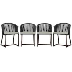 4 Cadeiras De Jantar Noronha Marrom Corda Náutica E3 Trama Preto