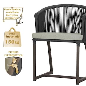 Descubra a Elegancia e Durabilidade da Cadeira Noronha. Combinando estilo e resistencia, esta cadeira traz o melhor do design contemporaneo em aluminio com micro pintura e acabamento em corda nautica. O estofado impermeavel completa o conforto e a funcionalidade, tornando-a ideal para ambientes externos e internos. Qualidade e elegancia que transformam qualquer espaco. Adicione um toque de sofisticacao e conforto ao seu espaco com a cadeira Noronha.