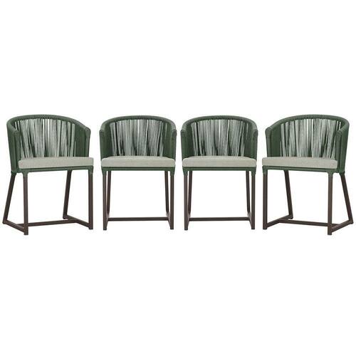 4 Cadeiras De Jantar Noronha Marrom Corda Náutica E3 Trama Verde
