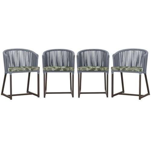 4 Cadeiras De Jantar Noronha Marrom Corda Náutica E5 Trama Prata