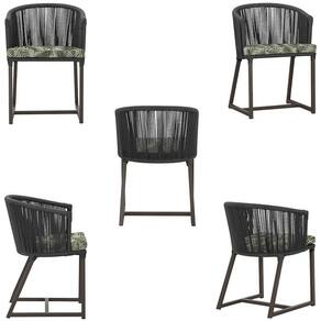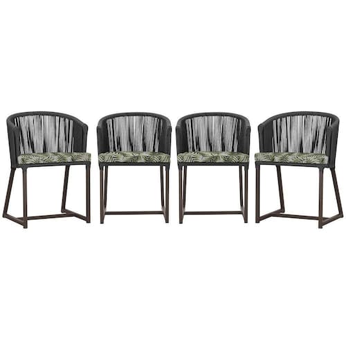 4 Cadeiras De Jantar Noronha Marrom Corda Náutica E5 Trama Preto