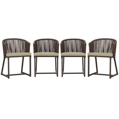 4 Cadeiras De Jantar Noronha Marrom Corda Náutica E7 Trama Marrom