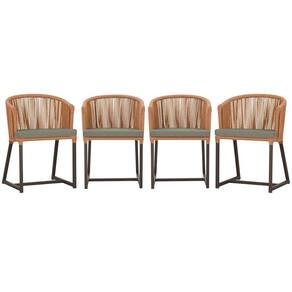 4 Cadeiras De Jantar Noronha Marrom Corda Náutica E8 Trama Terra Cota