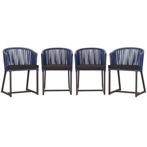 4 Cadeiras De Jantar Noronha Marrom Corda Náutica E9 Trama Azul