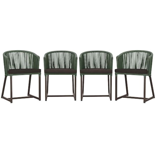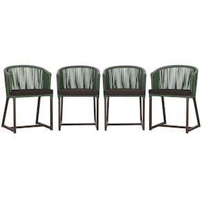 4 Cadeiras De Jantar Noronha Marrom Corda Náutica E9 Trama Verde