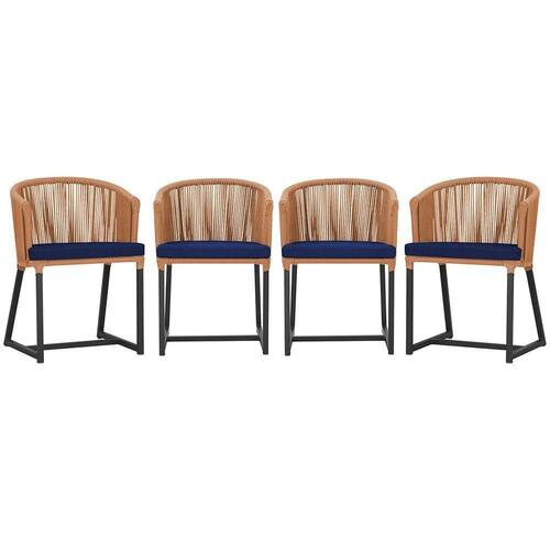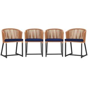 4 Cadeiras De Jantar Noronha Preta Corda Náutica E10 Trama Terra Cota
