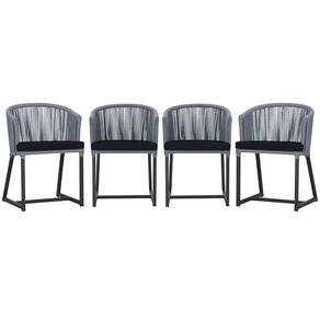 4 Cadeiras De Jantar Noronha Preta Corda Náutica E12 Trama Prata