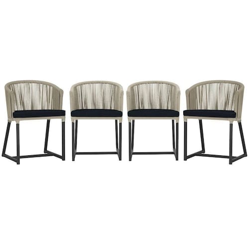 4 Cadeiras De Jantar Noronha Preta Corda Náutica E12 Trama Rami