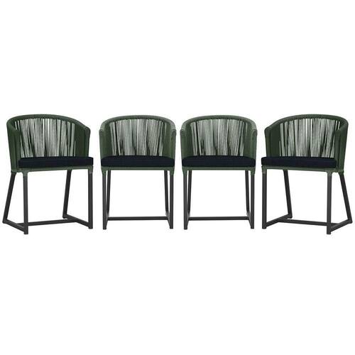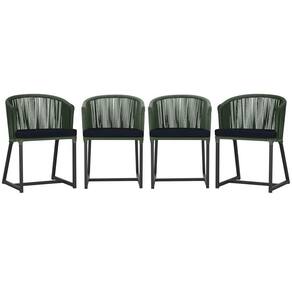 4 Cadeiras De Jantar Noronha Preta Corda Náutica E12 Trama Verde