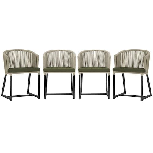 4 Cadeiras De Jantar Noronha Preta Corda Náutica E13 Trama Rami