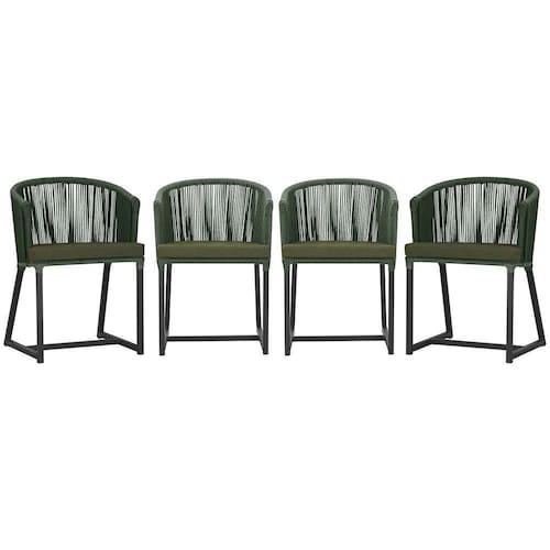4 Cadeiras De Jantar Noronha Preta Corda Náutica E13 Trama Verde