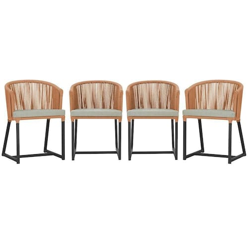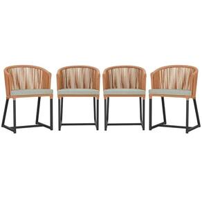 4 Cadeiras De Jantar Noronha Preta Corda Náutica E3 Trama Terra Cota