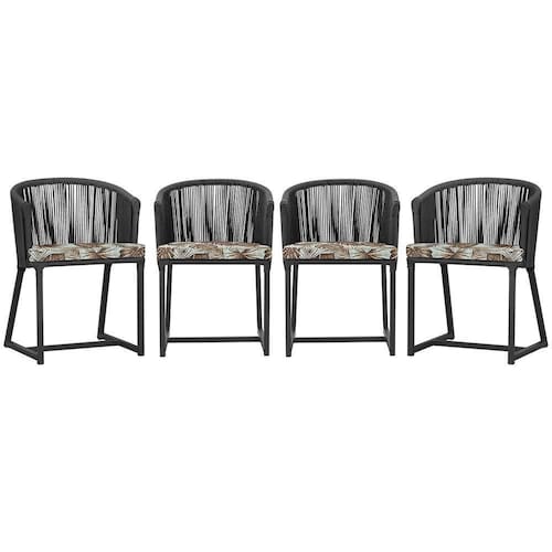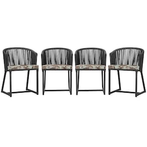 4 Cadeiras De Jantar Noronha Preta Corda Náutica E6 Trama Preto