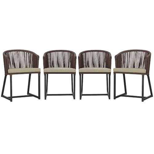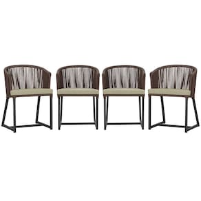 4 Cadeiras De Jantar Noronha Preta Corda Náutica E7 Trama Marrom