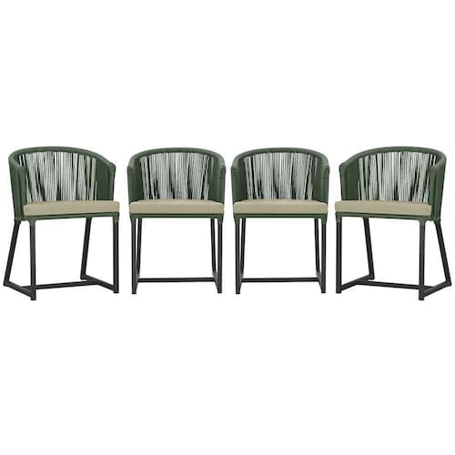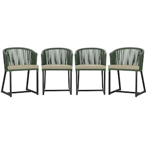 4 Cadeiras De Jantar Noronha Preta Corda Náutica E7 Trama Verde