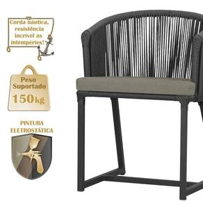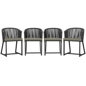 4 Cadeiras De Jantar Noronha Preta Corda Náutica E8 Trama Preto