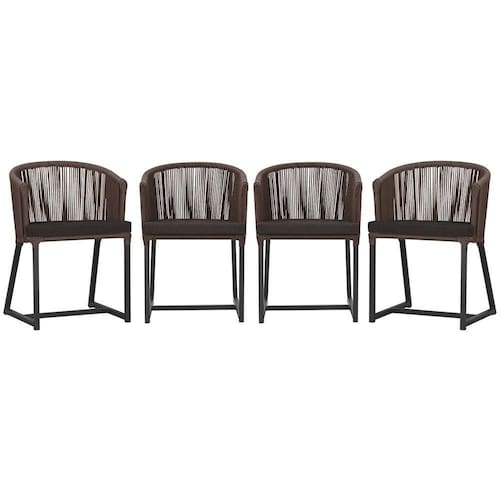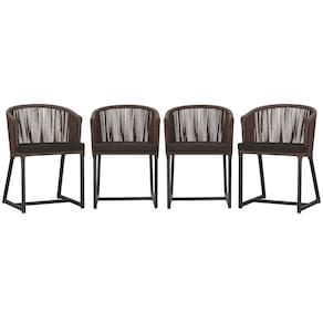 4 Cadeiras De Jantar Noronha Preta Corda Náutica E9 Trama Marrom