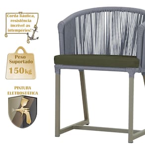 Descubra a Elegância e Durabilidade da Cadeira Noronha. Combinando estilo e resistência, esta cadeira traz o melhor do design contemporâneo em alumínio com micro pintura e acabamento em corda náutica. O estofado impermeável completa o conforto e a funcionalidade, tornando-a ideal para ambientes externos e internos. Qualidade e elegância que transformam qualquer espaço. Adicione um toque de sofisticação e conforto ao seu espaço com a cadeira Noronha.