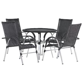 4 Cadeiras E Mesa, 2 Espreguiçadeiras E Mesa Preto Kit 4 Cadeiras Venus e Mesa Garden, 2 Espreguicadeiras Catar e Mesa Emily Para Jardim, Piscina , Ag