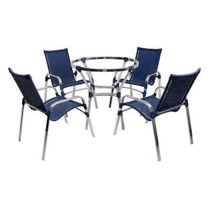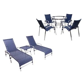 4 Cadeiras E Mesa Com Tampo E 2 Espreguiçadeiras Regulável Trama - Azul Petróleo