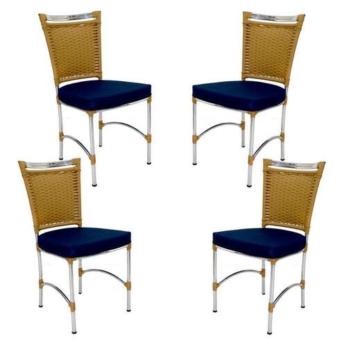 4 Cadeiras Em Alumínio E Fibra Sintética Jk Cozinha Edícula Avelã E Lisato Marinho