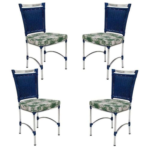4 Cadeiras Em Alumínio E Fibra Sintética Jk Cozinha Edícula Azul Dark E Trancoso