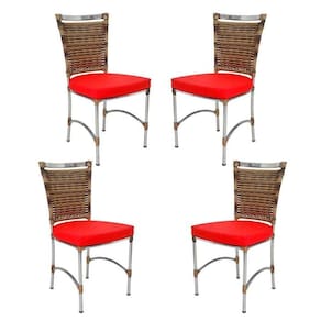 4 Cadeiras Em Alumínio E Fibra Sintética Jk Cozinha Edícula Cappuccino E Vermelho