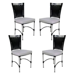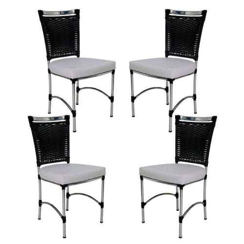 4 Cadeiras Em Alumínio E Fibra Sintética Jk Cozinha Edícula Preto E Branco Desenhado
