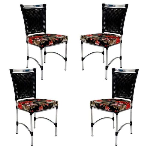 4 Cadeiras Em Alumínio E Fibra Sintética Jk Cozinha Edícula Preto Maui Preto