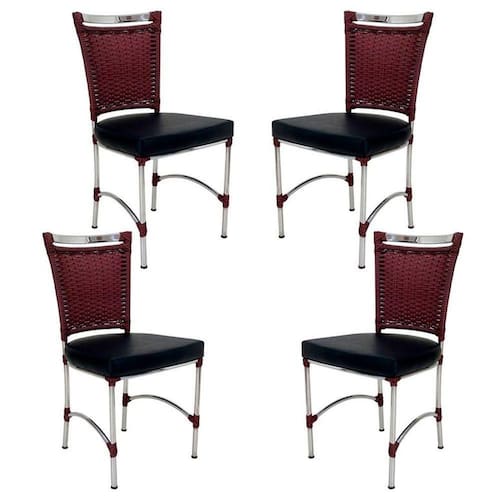 4 Cadeiras Em Alumínio E Fibra Sintética Jk Cozinha Edícula Vinho Dark E Nautico Preto