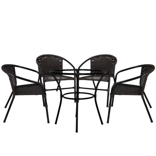 4 Cadeiras Em Fibra Sintética Com Mesa Salinas Para área De Lazer - Tabaco