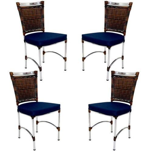 4 Cadeiras Jk Em Alumínio E Fibra Sintética Cozinha Edícula Argila E Lisato Marinho Caracteristicas: Pecas produzidas em aluminio polido e revestidas em fibra sintetica com protecao UV. Nossos produtos sao artesanais e podem ocorrer variacoes na medida de ate 2cm. As cores dos produtos podem variar de acordo com o ambiente e com a iluminacao em que as fotos foram tiradas. Estofado em couro nautico da kelsons ou tecido acquablock da karsten. Suporta ate 170 kg