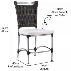 Dimensoes: Altura total: 94 cm Altura assento ao chao: 50cm Largura: 48 cm Comprimento: 44cm Peso: 23 kg Suporta ate 170 kg
