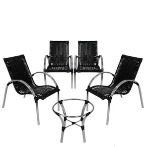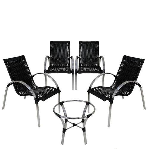 4 Cadeiras Mesa De Centro Garden Em Em Alumínio Preta - Preto