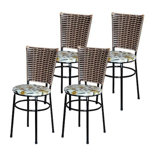 4 Cadeiras Pretas Para Cozinha Hawai Avelã Assento Floral Orquídea - Preto